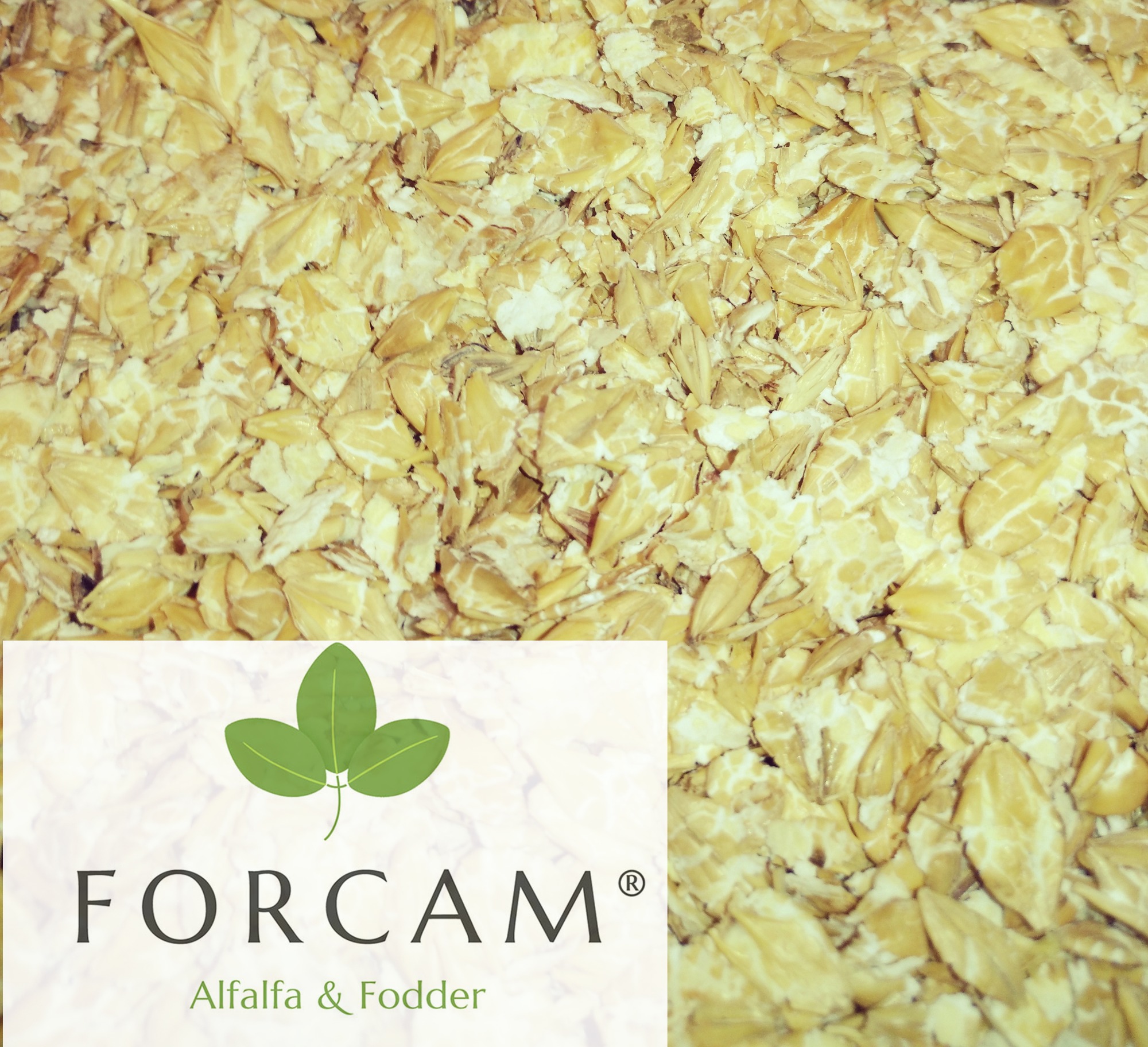 Cebada aplastada para la alimentación animal.